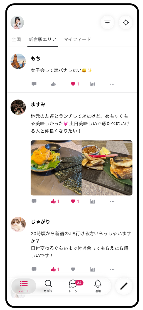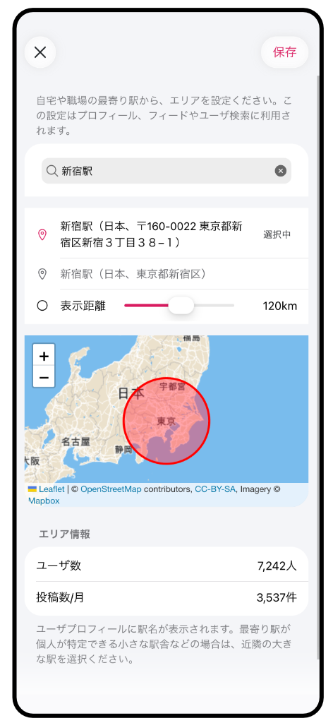 最初にあなたのエリアを設定しよう!近くの情報や話題が自動で集まり、もっと身近で楽しいつながりが見つかります。