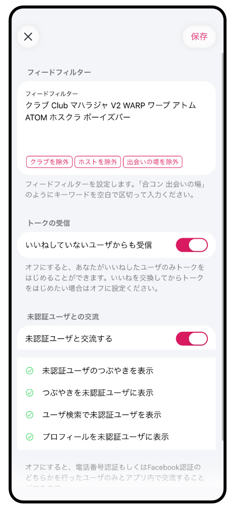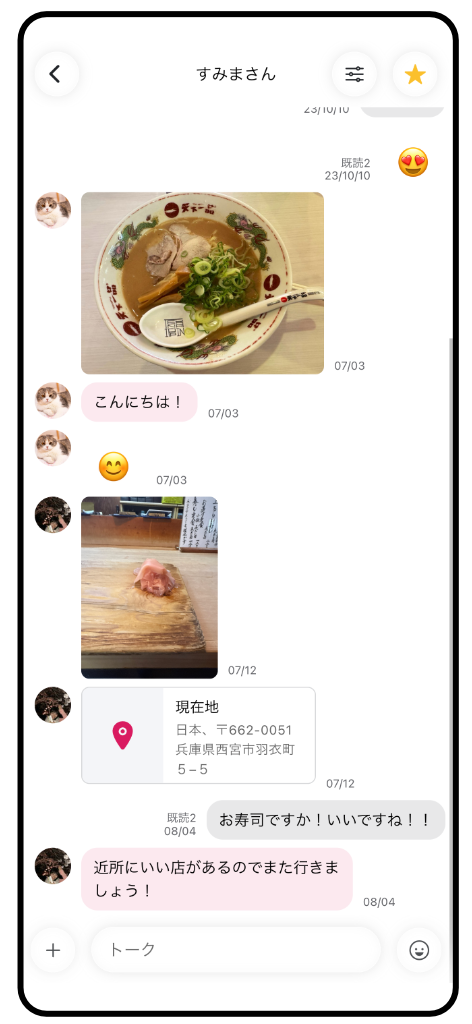 ゆっくり話したいときはトークで。1対1はもちろん、気の合う仲間とグループトークも楽しめます。